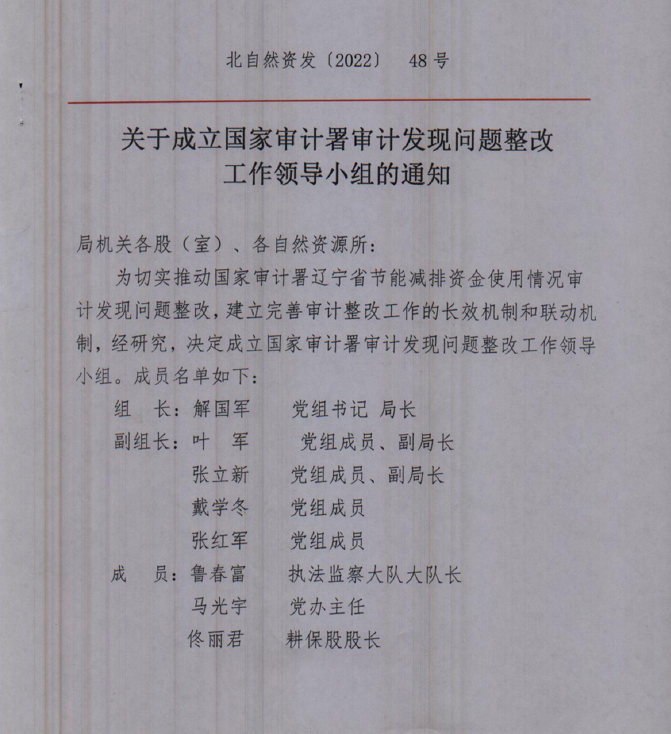 关于成立国家审计署审计发现问题整改工作领导小组的通知